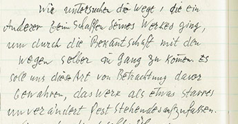 Paul Klee schrieb 1921 im Manuskript für seine Form- und Gestaltungslehre am Bauhaus in Weimar: „Wir untersuchen die Wege, die ein Anderer beim Schaffen seines Werkes ging, um durch die Bekanntschaft mit den Wegen selber in Gang zu kommen.“ (Spiller 1990, S. 99 u.) Mit solchen Gedanken er-